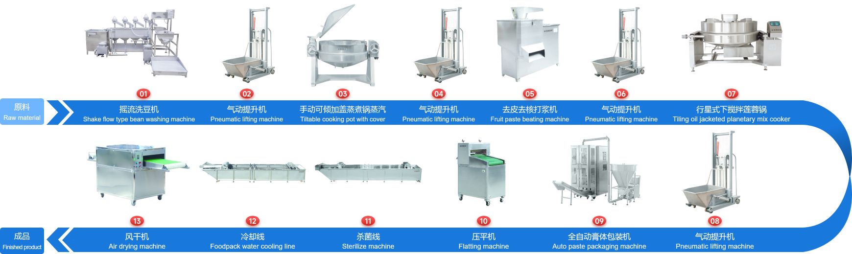 企業(yè)經(jīng)多年研制開發(fā)的下攪拌可傾式蓮蓉鍋、下攪拌夾層鏟鍋、可傾式蒸煮鍋、去皮去核打漿機(jī)、立式熱抽真空包裝機(jī)、餡料風(fēng)干壓平機(jī)、餡料冷卻線、江米條成型機(jī)、循環(huán)過濾油炸鍋、下出料脫油機(jī)等設(shè)備在國內(nèi)同類設(shè)備中達(dá)到綠色環(huán)保標(biāo)準(zhǔn),已報(bào)國家專利局和有關(guān)部門申請認(rèn)證,成為企業(yè)的品牌產(chǎn)品,深受廣大客戶的支持和信賴。
